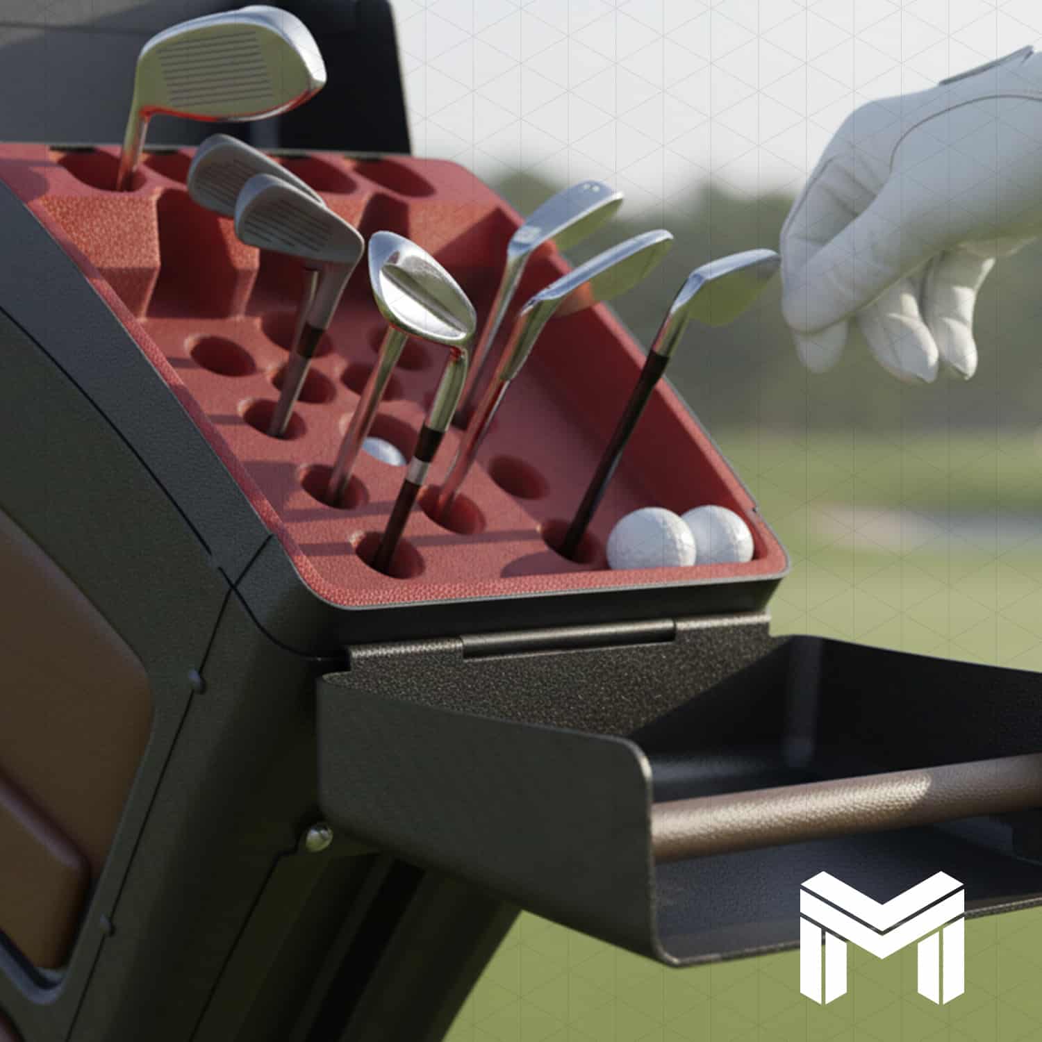 Concevoir un caddie de golf tout-en-un combinant sac et châssis pour un transport simplifié et sécurisé.